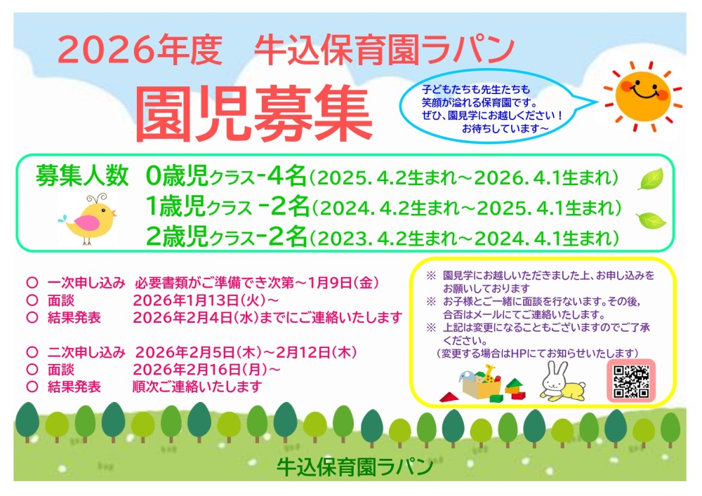 当園は0~2歳児対象企業主導型小規模保育園です。定員12名(企業枠6名、地域枠6名) |